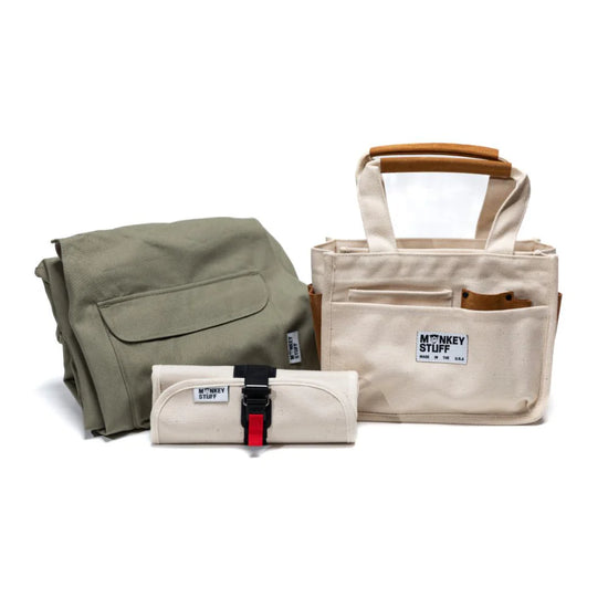 He first reached out to us in 2024 to help design a messenger bag for himself, and a backpack for his daughter (both of which you can now find on MonkeyStuff.com). That collaboration kicked off an ongoing creative partnership. With his clay expertise and our bag know-how, we teamed up to design a ceramic tool bag we were so excited about, we decided to share it with the wider community.