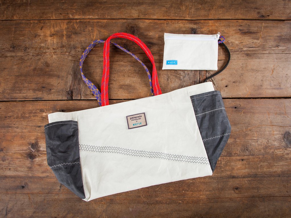 Mafia is more than just bags.Β We rethink materials and give them new life.Β We partnered with Patagonia to up-cycle retired jackets and make a unique tote and apron for Patagonia Provisions.Β Designed and manufactured in San Francisco, this apron is made out of 100% up-cycled materials: Climbing ropes salvaged from Yosemite, sails collected in San Francisco Bay Area, pockets cut from retired Patagonia jackets.