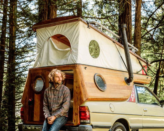 Some of our friends at Patagonia moved on to work at Rivian. They had our number, so when the Rivian team needed collaborators for sustainable products in their retail spaces, they gave us a call. We made some great gear and then got introduced to their interior design team, who had even bigger ideas.