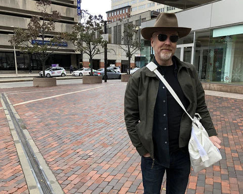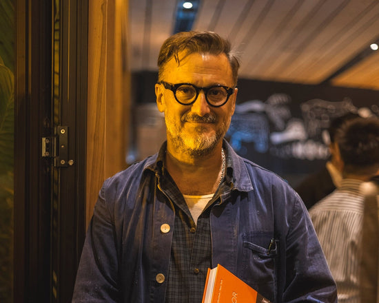 We first met Tom back in 2016, when he was doing a show at YBCA (Yerba Buena Center for the Arts) in San Francisco. What started as a custom bag order turned into an almost decade-long creative partnership. Since then, weβve built a whole network β a kind of extended family of rascally creatives. We design together, we holiday together, and everything in between.