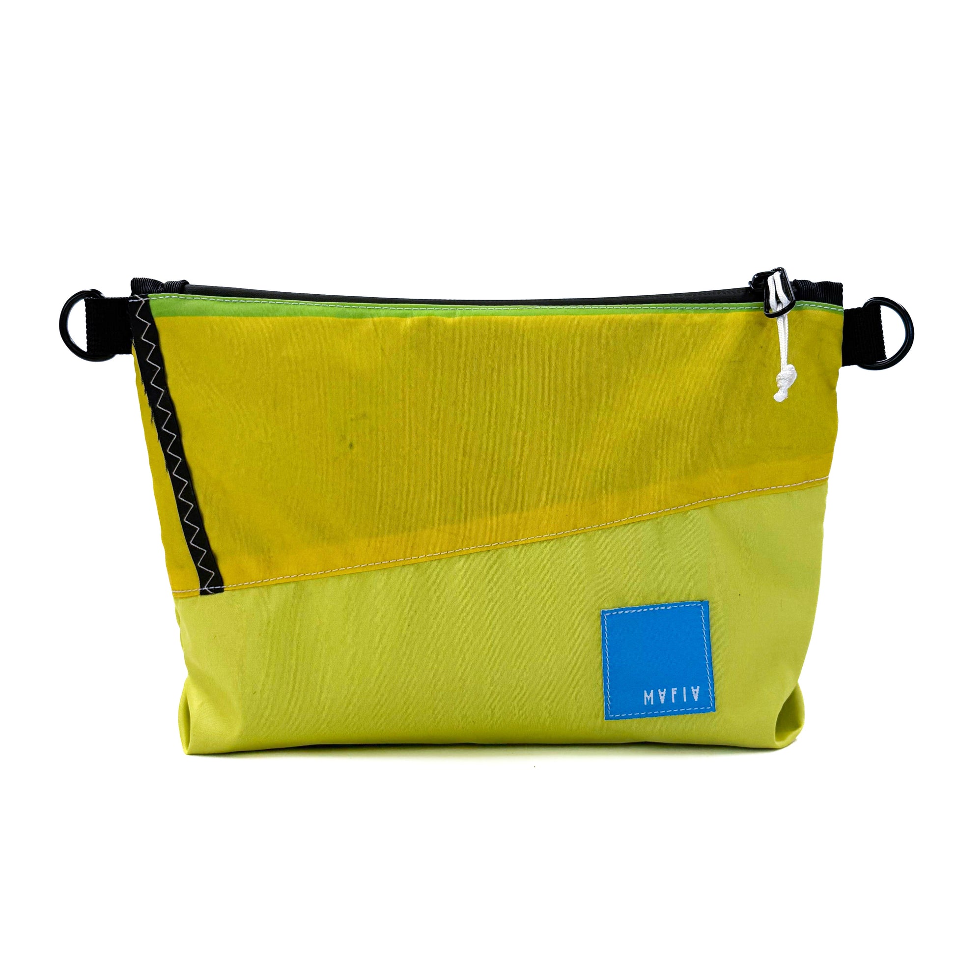 Each pouch is uniquely designed with special attention and features one of a kind characteristics of upcycled sails. No two bags are the same. Please expect some variations in the bag you receive, such as: original stitching of sails, insignia letters and numbers, zipper pulls rope color (repurposed kite lines), color accents.