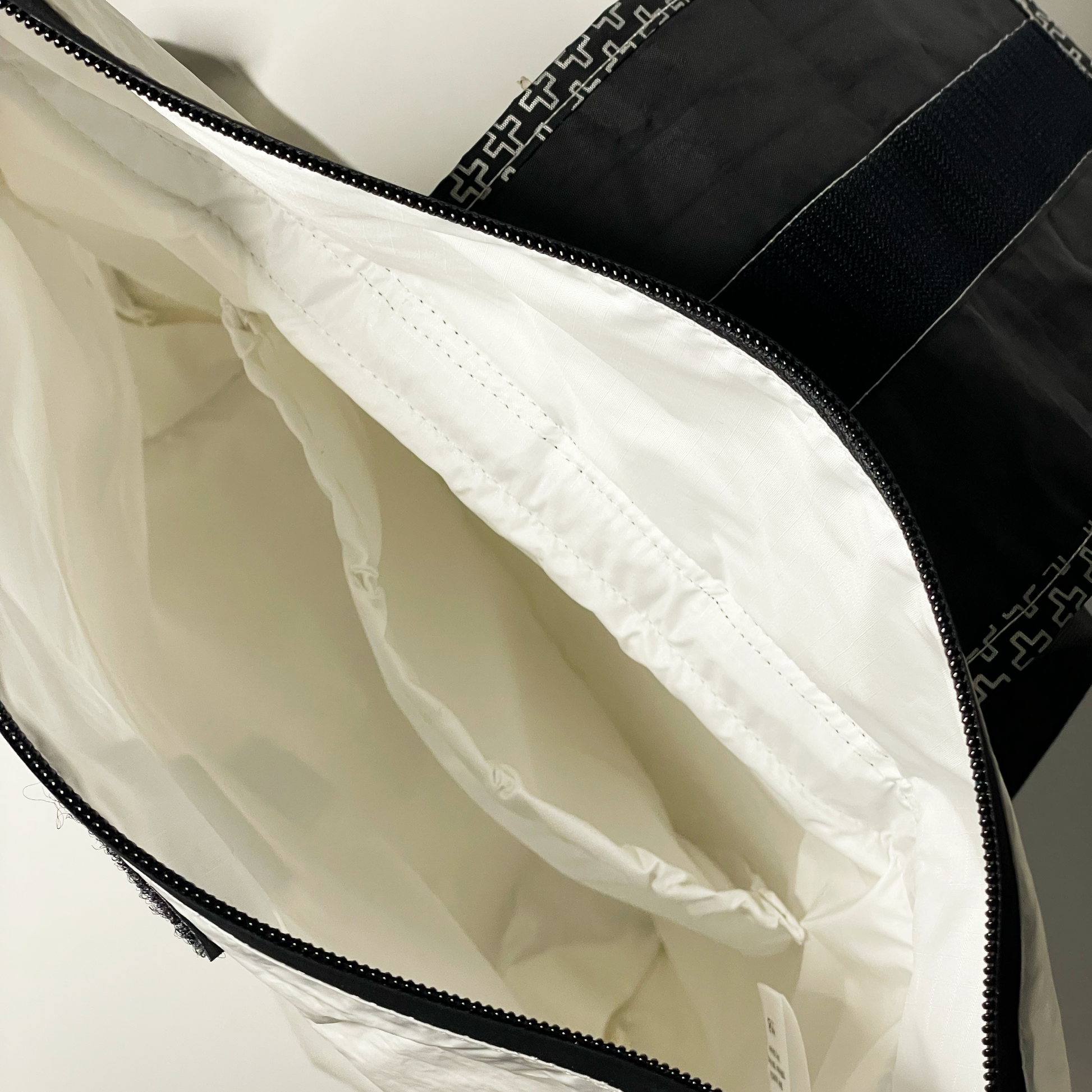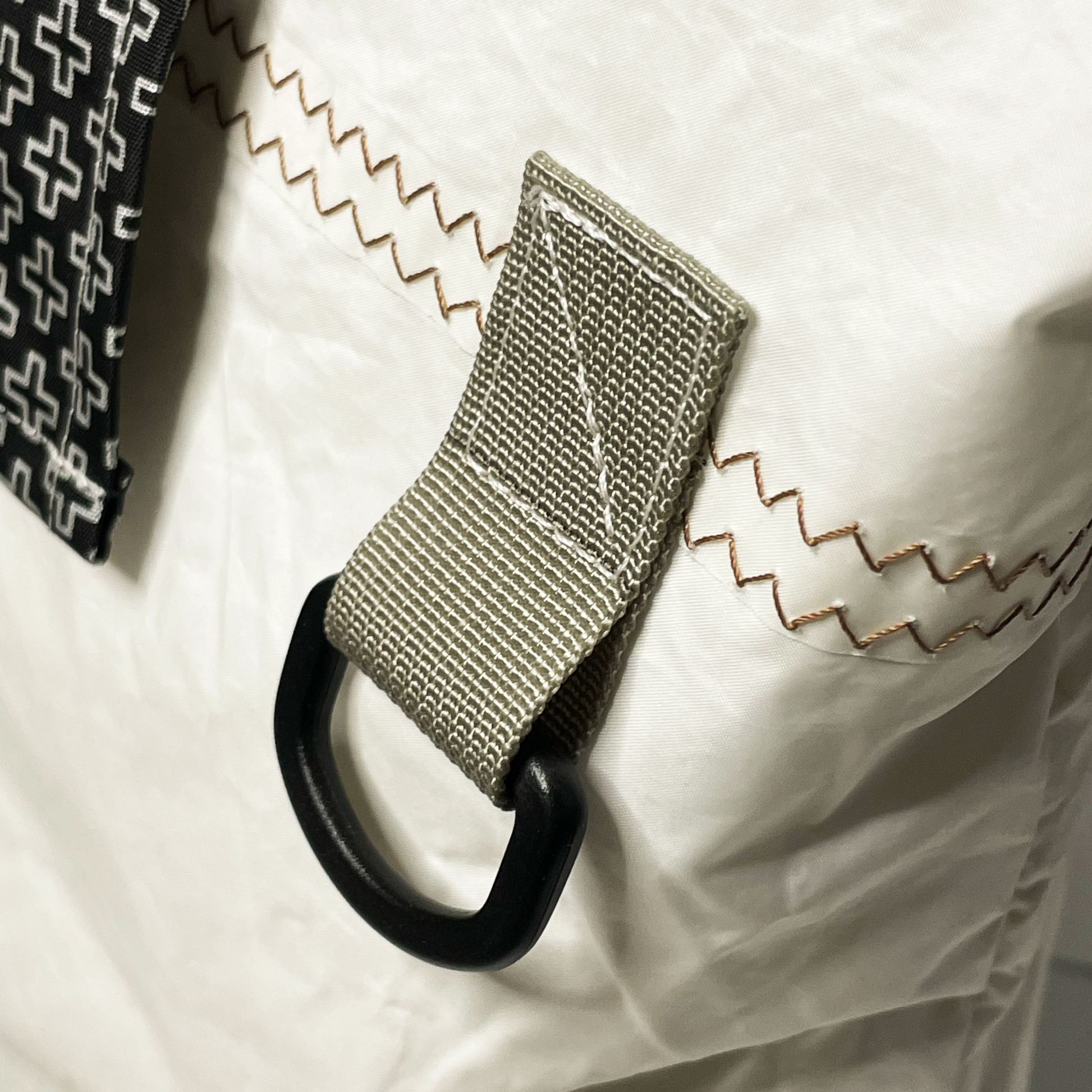 Each bag is uniquely designed with special attention and features one of a kind characteristics of upcycled sails. No two bags are the same. Please expect some variations in the bag you receive, such as: original stitching of sails, insignia letters and numbers, zipper pulls rope color (repurposed kite lines) and color accents